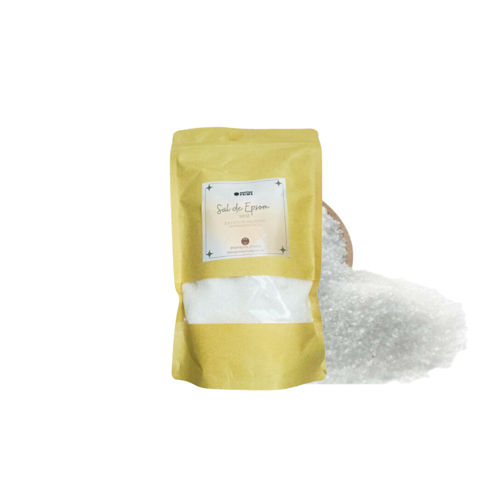 Sal de epsom, sulfato de magnésio que alivia tensões desintoxicando o corpo e promovendo o relaxamento corporal profundo.